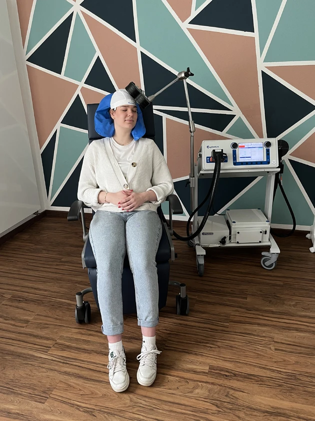 Bei der rTMS wird eine Magnetspule auf den Kopf gesetzt, die kurze Impulse an bestimmte Hirnregionen sendet – besonders an jene, die bei Depression unteraktiv sind. Diese Impulse regen die Aktivität der Nervenzellen an und können depressive Symptome spürbar lindern. Die Methode ist nicht-invasiv, gut verträglich und kommt ohne Medikamente aus. Die Sitzungen dauern etwa 20–30 Minuten und finden mehrmals pro Woche statt.